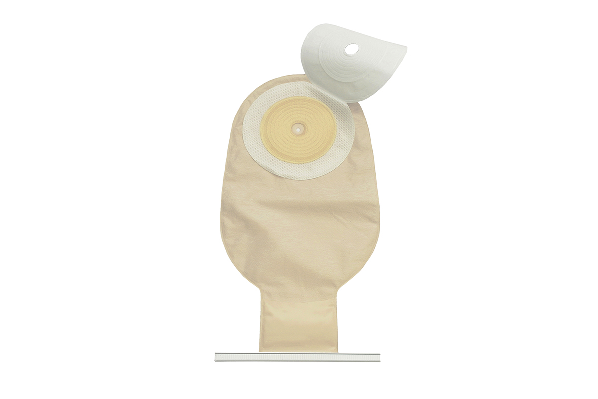Incluye protector de piel integrado a base de carboximetilcelulosa sódica con adhesivo, con guía recortable que permite abrir orificio para el estoma a diferentes medidas de 25 a 60 mm. La cara interna de la bolsa cuenta con protector que evita la irritación de la piel.