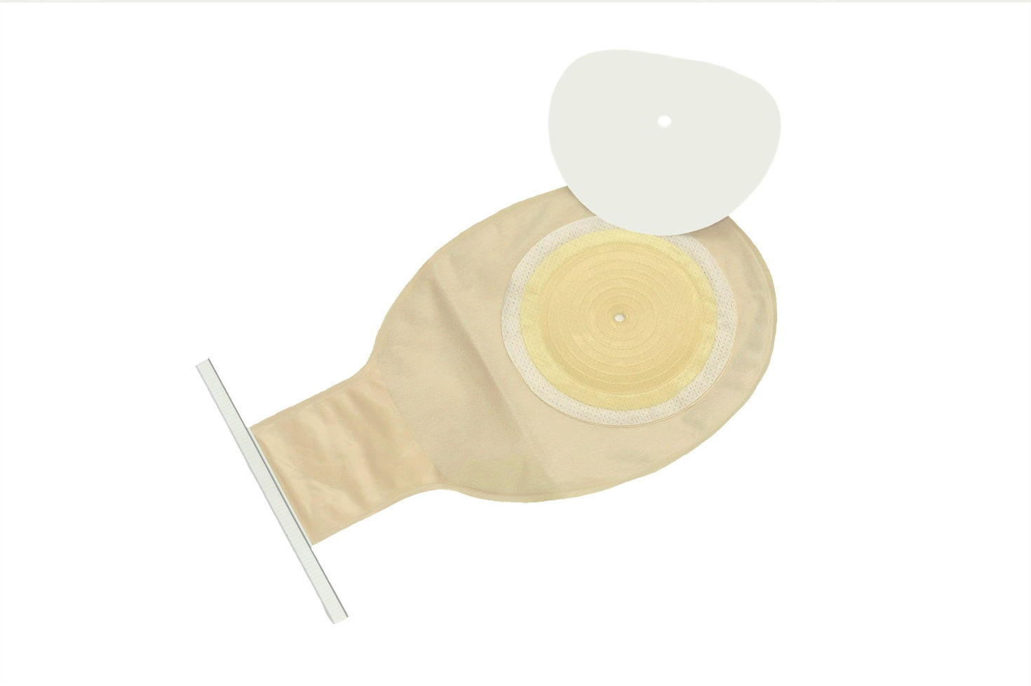 Bolsa para ileostomía o colostomía, tamaño infantil, autoadherible, de plástico grado médico, suave transparente, a prueba de olor, drenable, en forma de botella de 23 x 13 cm abierta en su parte más angosta, con cuello de 5 a 6 cm de ancho y 3 a 5 cm de largo, con pinza de seguridad o mecanismo de cierre, con protector de piel integrado a base de carboximetilcelulosa sódica. Con adhesivo, con guía recortable que permita abrir orificio para el estoma a diferentes medidas que van de 6 a 60 mm, la cara interna deberá tener un protector que evite la irritación de la piel.